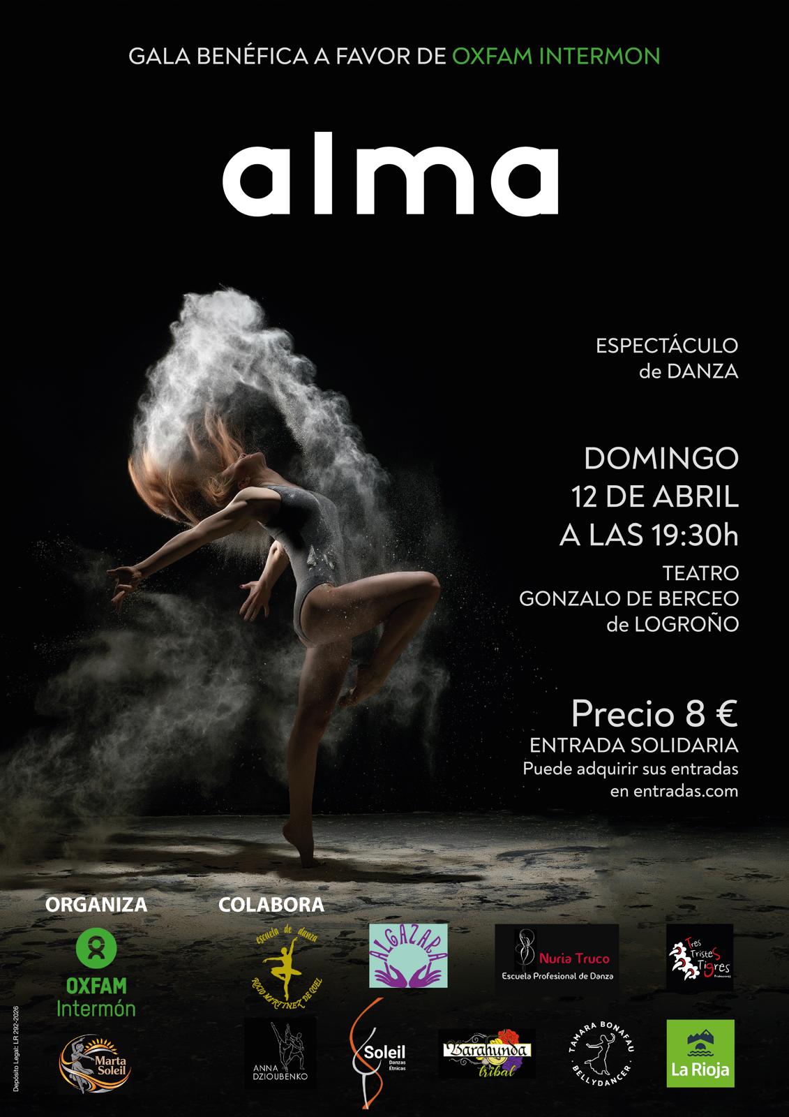 La ciudad de Logroño acogerá el próximo 12 de abril un evento cultural con enfoque solidario y de derechos humanos: la gala benéfica “ALMA”, a favor de Oxfam Intermón. El espectáculo tendrá lugar en el Teatro Gonzalo de Berceo a las 19:30 horas, con una entrada solidaria de 8 euros.
