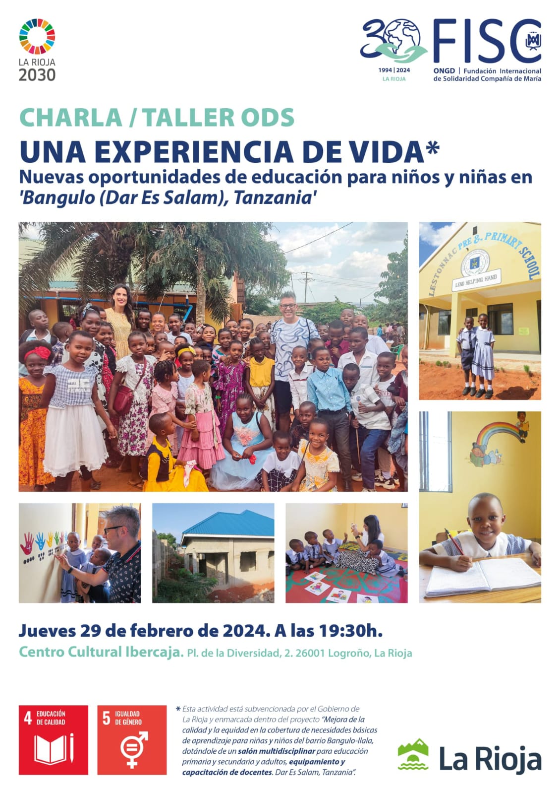 La ONGD FISC va a dar una charla/taller en el Centro Ibercaja La Rioja en la que conoceremos, de primera mano el proyecto que llevan a cabo en Dar es Salaam, Tanzania.