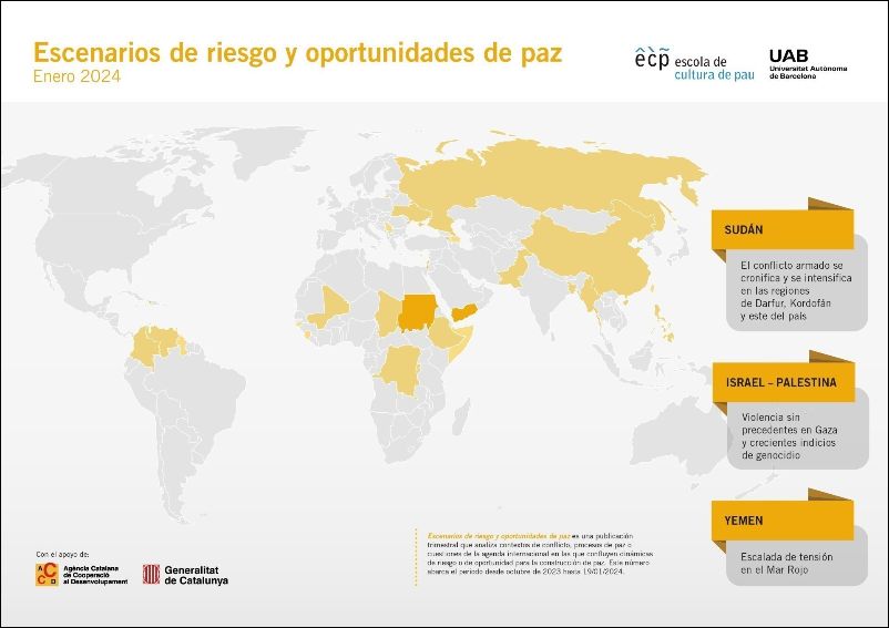 Escenarios de riesgo y oportunidades de paz es una publicación trimestral elaborada por la Escola de Cultura de Pau, de la Universitat Autònoma de Barcelona, que analiza contextos de conflicto, procesos de paz o cuestiones de la agenda internacional en las que confluyen dinámicas de riesgo o de oportunidad para la construcción de paz.