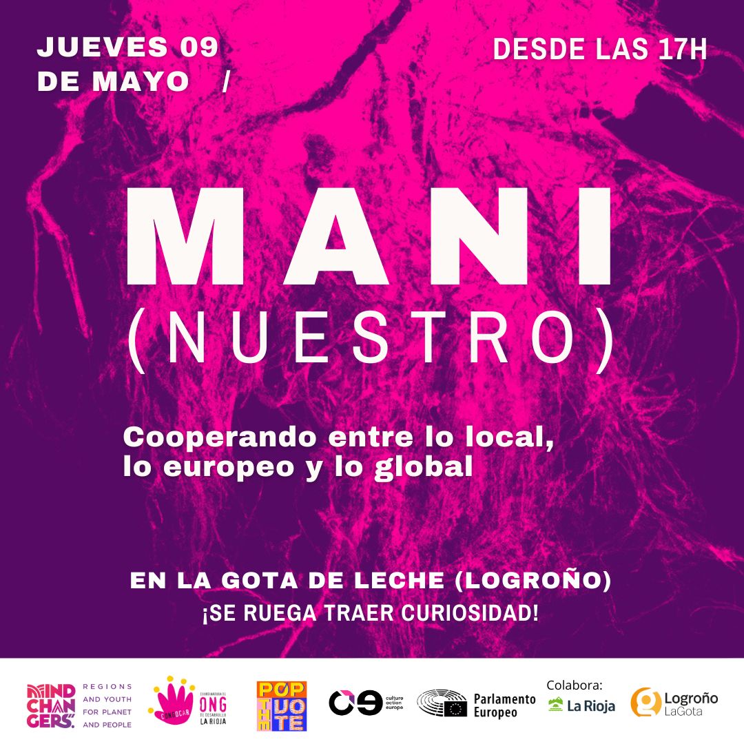 El proyecto Mindchangers va a realizar una nueva jornada en La Rioja bajo el título Mani(nuestro): Cooperando entre lo local, lo europeo y lo global, coorganizada por Mindchangers, CONGDCAR y Pop The Vote! Culture on the Ballot.