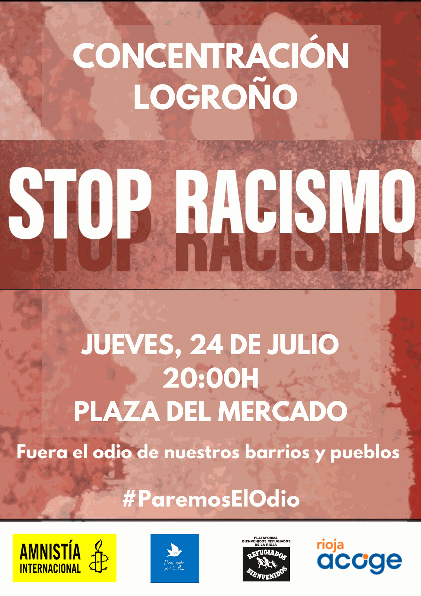 Concentración: jueves 24 de julio a las 20:00 en la Plaza del Mercado de Logroño, bajo el lema "STOP RACISMO".