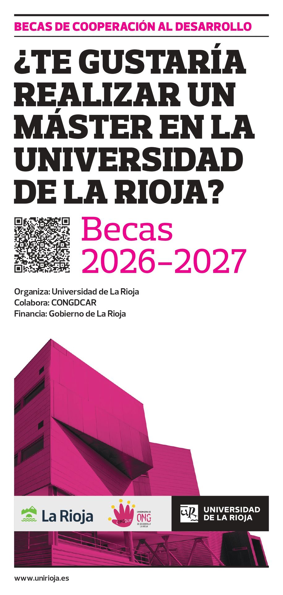 La Universidad de La Rioja publicará próximamente una convocatoria de 10 becas de cooperación al desarrollo destinadas a la realización de estudios de máster durante el curso académico 2026-2027.