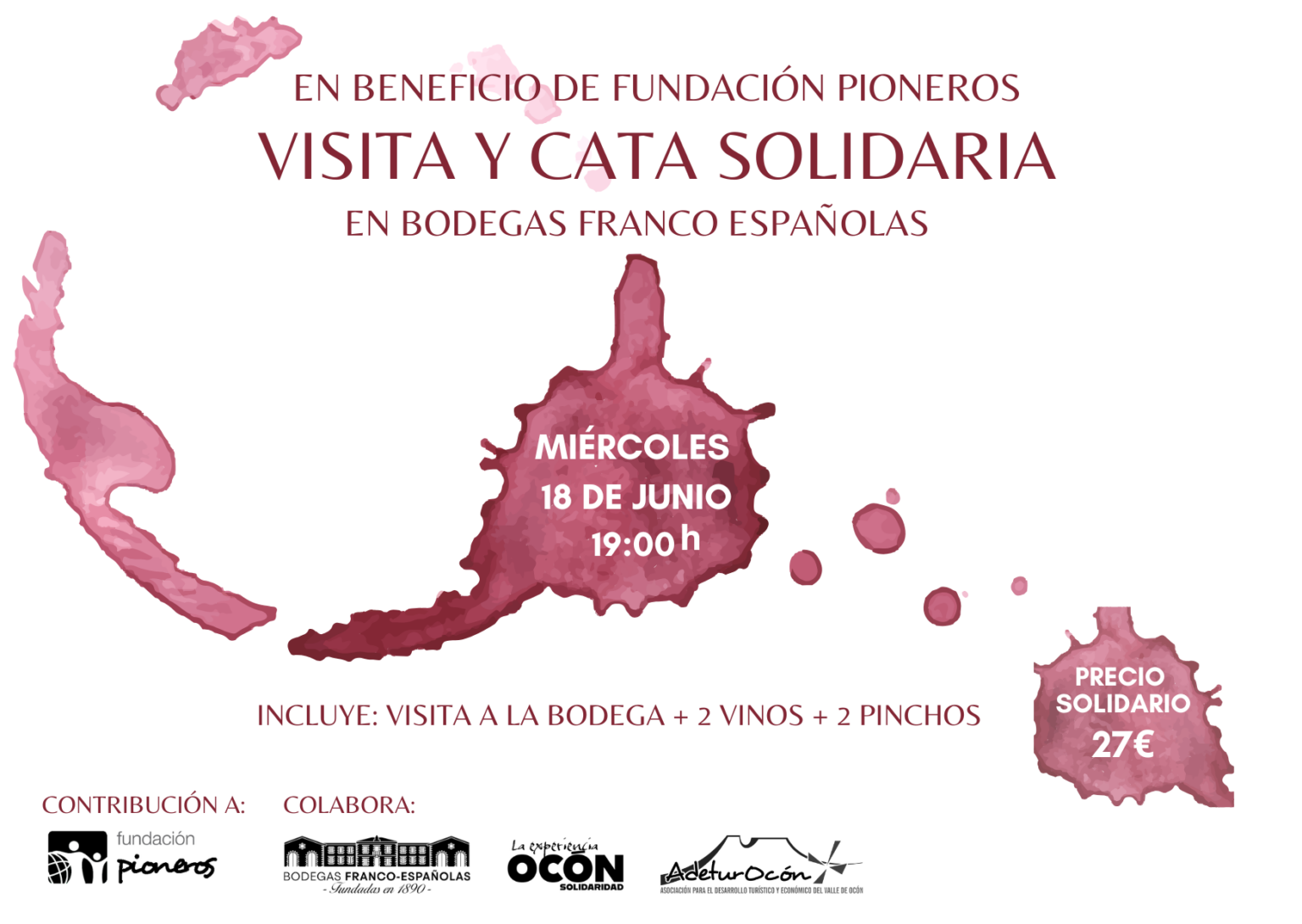 El miércoles 18 de junio a las 19:00 h, Fundación Pioneros te quiere hacer partícipe de una experiencia solidaria muy especial: una Visita y Cata en las Bodegas Franco Españolas, con la que compartir una tarde para disfrutar, encontrarnos y brindar por las oportunidades para la juventud.